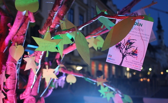 Den Frieden wachsen lassen Interreligiöses Friedensprojekt "Den Frieden wachsen lassen" 2015 Friedensaktion am Stadtplatz im Rahmen der langen Nacht der Kirchen Gemeinsames Pflanzen eines Friedensbaums im Schlosspark Nähere Beschreibung: Let_the_peace_grow mehr: Den Frieden wachsen lassen