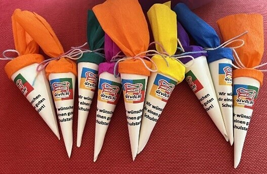 Schultütenaktion am 12. September 2023 Schultüten mit Gutscheine am ersten Schultag. mehr: Schultütenaktion am 12. September 2023