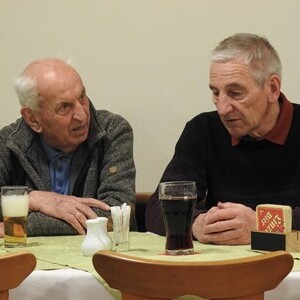 Der Obmann der Katholischen Männerbewegung Eferding Franz Plöchl begrüßt den Geschäftsführer des Naturparks Obst-Hügel-Land DI Rainer Silber, der mit seiner Mitarbeiterin Mag.a Siglinde Hollnsteiner das Naturparkteam bildet.