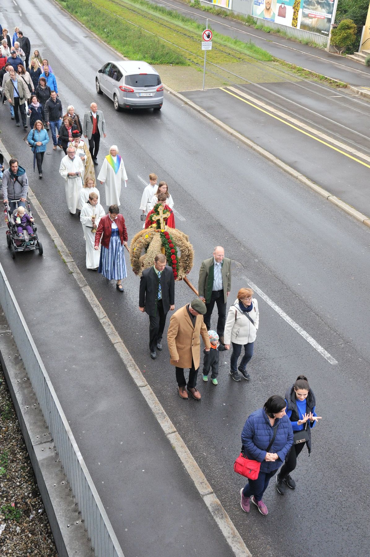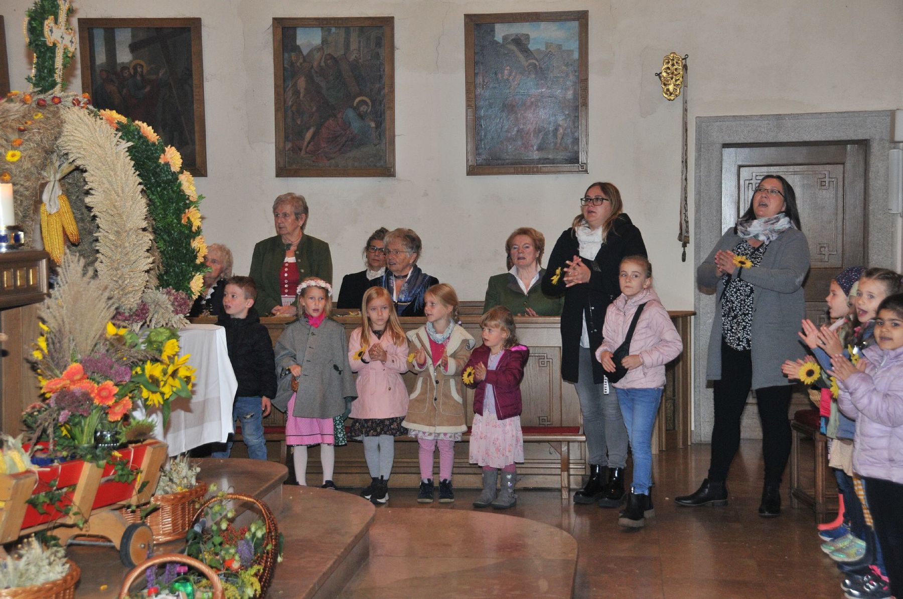 Die Erntekrone wurde am Volkshausparklatz gesegnet. Die anschließende Prozession zur Pfarrkirche wurde vom „Musikverein Ebelsberg-Pichling“ angeführt. Viele Kindergartenkinder mit ihren Familien nahmen am Erntedankfest teil. Im Rahmen der Feier in der Pfarrkirche wurde der „Goldene Krug“ an den Obmann des „Musikverein Ebelsberg-Pichling“ Gerhard Ehrenberger für seine Verdienste um das Vereinsleben in Ebelsberg-Pichling überreicht. Der Kapellmeister Josef Schütz würdigte in seinem Rückblick die jahrzehntelange aktive Tätigkeit des Geehrten im Musikverein. Karl Heinz Zöhrer gab uns Einblick in das Wesen des EPV (Ebelsberg-Pichlinger Vereine). Er würdigte auch die Tätigkeit des vor kurzem verstorbenen Gründers und Obmannes Erich Sommer. In einer kurzen Stille gedachten wir des Verstorbenen. Nach dem Lied „Hoamatland“ wurde die Feier unter den Klängen des Musikvereins am Kirchenplatz und im Pfarrzentrum fortgesetzt. Hier gilt auch der „Bauernschaft“ unser Dank für die Organisation und der Verköstigung. Und … auch der Himmel hat das Seine zum Gelingen des Festes beigetragen!