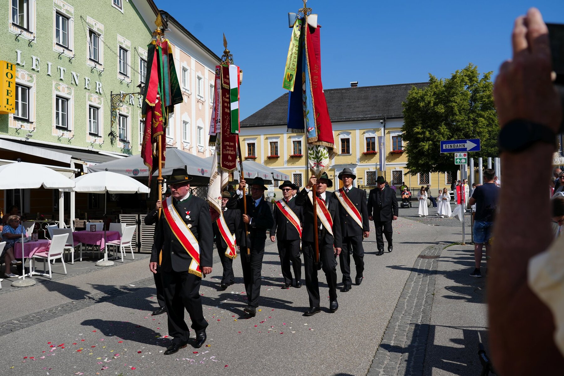Gekommen waren auch alle Feuerwehren des Abschnitts Mondsee mit ihren großen Jugendgruppen. Sowie viele weitere Vereine, unter ihnen die Mondseer Prangerschützen, die Alttrachten, die Goldhaubengruppe, der Kameradschaftsbund und die Zünfte, die wieder ihre Fahnen bei der Prozession trugen. Die Messe und die Prozession wurden von der Bürgermusikkapelle Mondsee und der Musikkapelle Tiefgraben musikalisch gestaltet.