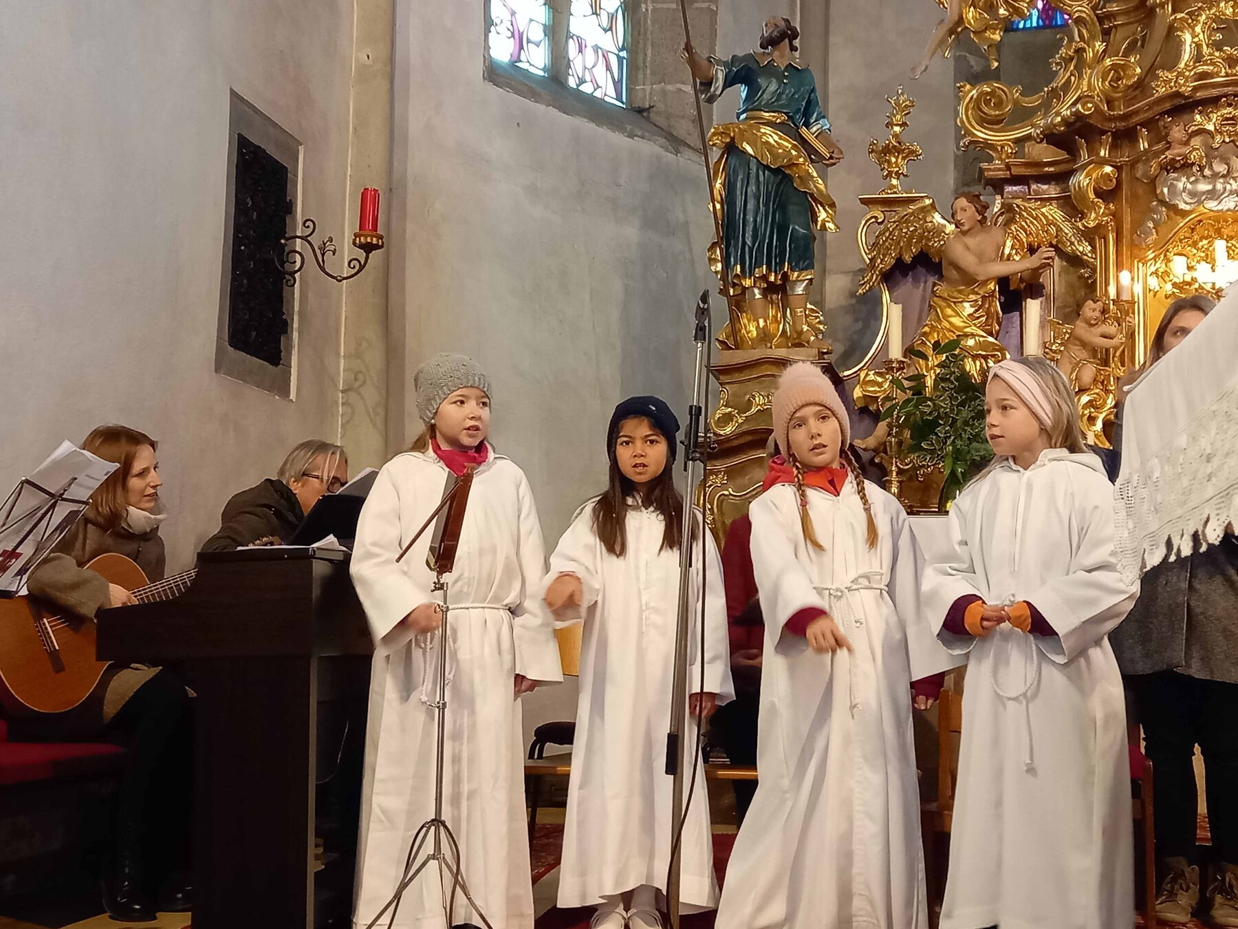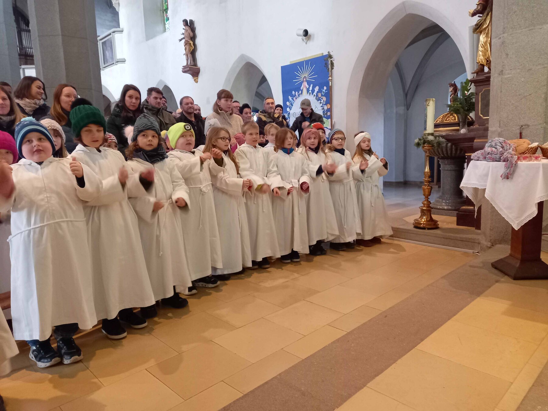 Treuen Kirchenbesuchern fiel dabei sofort eine große Änderung auf. Die zukünftigen Erstkommunionkinder trugen einheitliche Kutten, welche freundlicherweise von der Pfarre Mauthausen zur Verfügung gestellt wurden.