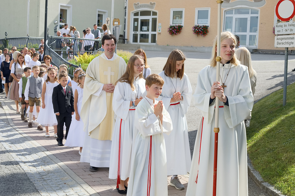 Im Juni spendete Kaplan Franziskus das Sakrament der Erstkommunion in unserer Pfarre - bei strahlendem Sonnensein auf dem Dorfplatz war es ein feierliches Fest. Hier ein paar Eindrücke von dem mitreißendem Gottesdienst.