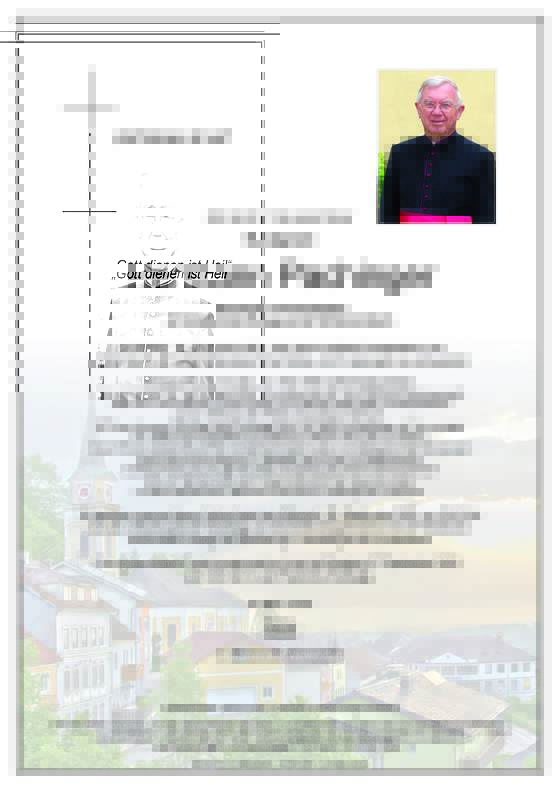 Gott, der Herr, hat seinen Diener Monsignore Hermann Pachinger zu sich gerufen