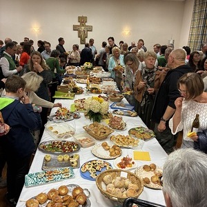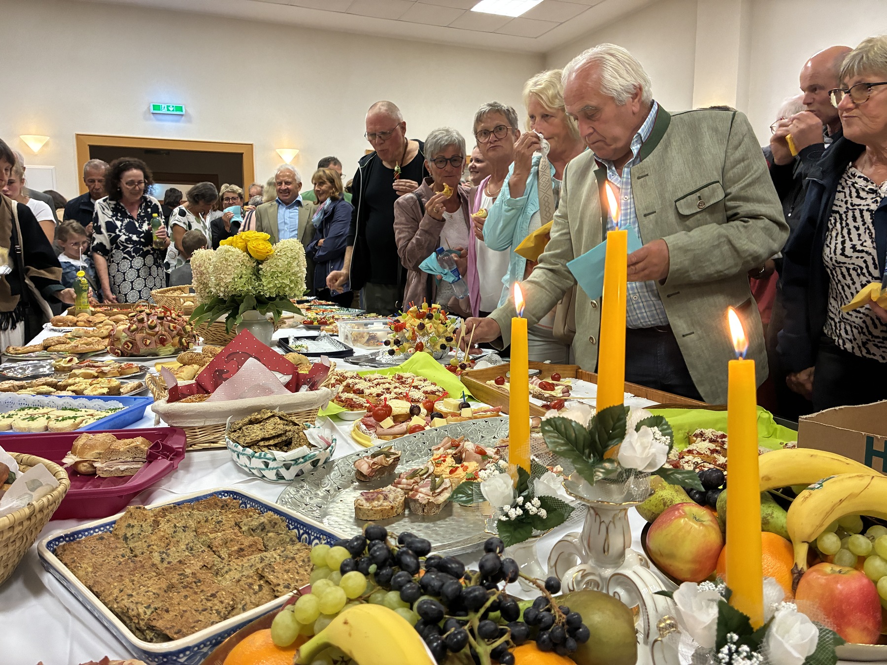 Nach der Hl. Messe begleitete den Pfarrer eine Gruppe der Ortsmusik in den Pfarrsaal, wo eine festlich gedeckte Tafel mit Speisen und Getränken auf die zahlreichen Gäste wartete. Viele nutzten die Gelegenheit, sich persönlich zu bedanken und gute Wünsche für den neuen Lebensabschnitt auszusprechen. Gemeinsam ließ die Pfarre den scheidenden Pfarrer hochleben. Josef Pollhammer wird künftig in Braunau am Inn wohnen und weiterhin in der Seelsorge aushelfen und in der Krankenhausseelsorge tätig sein.